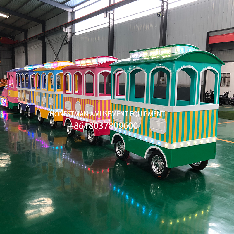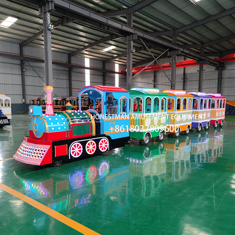 Amusement park trains are available for sale and can be customized for both indoor and outdoor use. They play a variety of roles in leisure agriculture. They serve as a vehicle for sightseeing. Many farms design tour routes where the trains weave through rice paddies, vegetable plots, or forests, allowing visitors to admire the changing agricultural landscapes of the seasons, such as the blossoming of flowers in spring and the bountiful harvest in autumn. They are also commonly used in themed events, such as festivals and carnivals, where trains are decorated in themed styles to increase the fun and engagement of the event. Trackless trains are more commonly seen in amusement parks, parks, squares, scenic spots, and resorts.