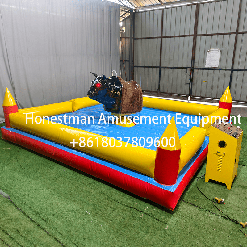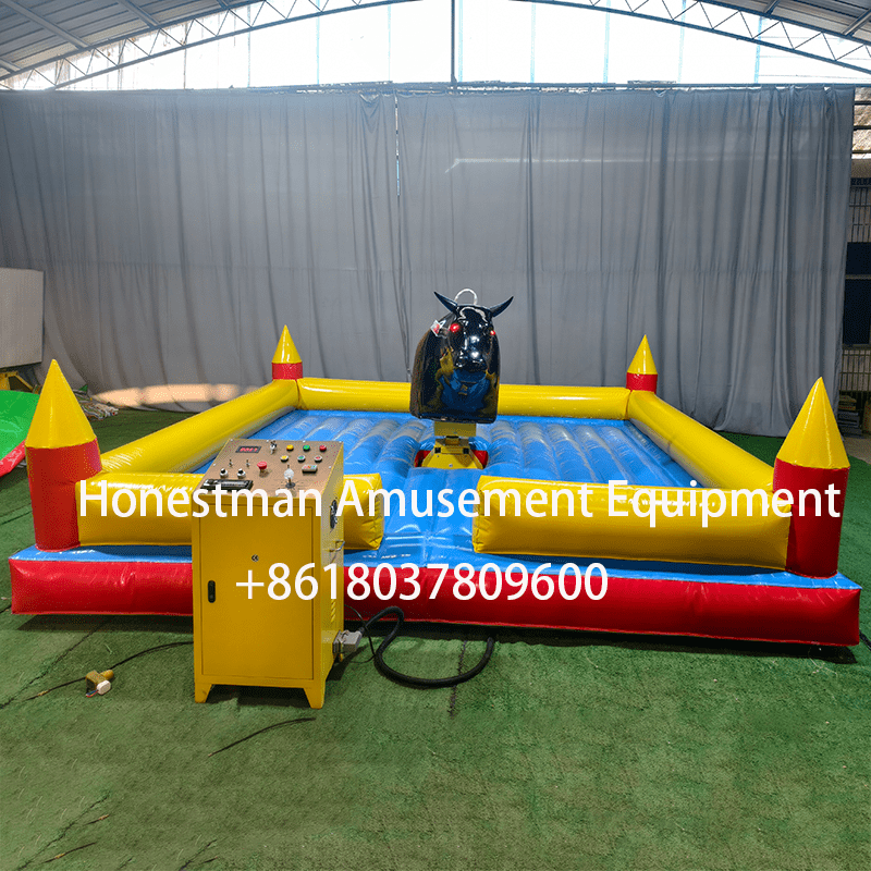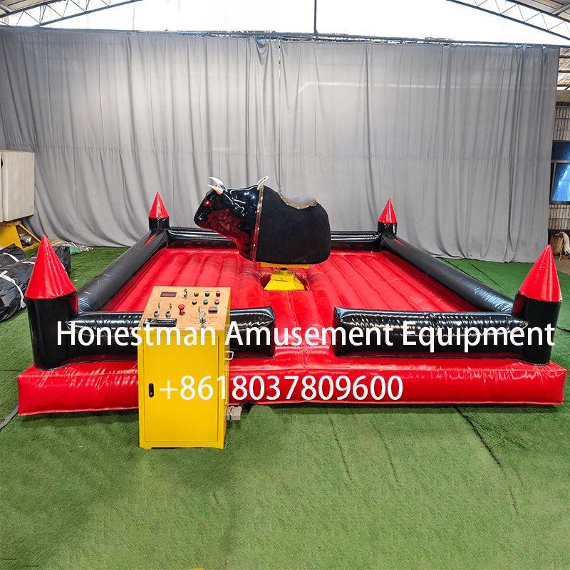 The new bull riding machine is a black bull. It has many functions, a beautiful appearance and is very comfortable to ride.