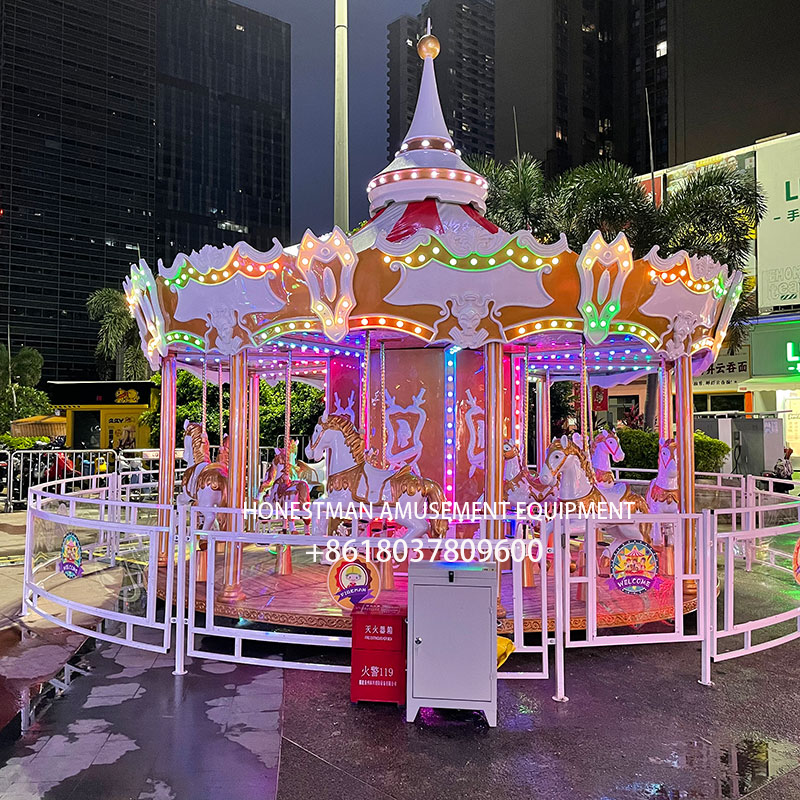The carousel has always been popular among both adults and children and is an indispensable product in amusement parks. As the music began to play, the carousel slowly started to rotate, and the adults and children sitting on the horses on it showed happy smiles on their faces.