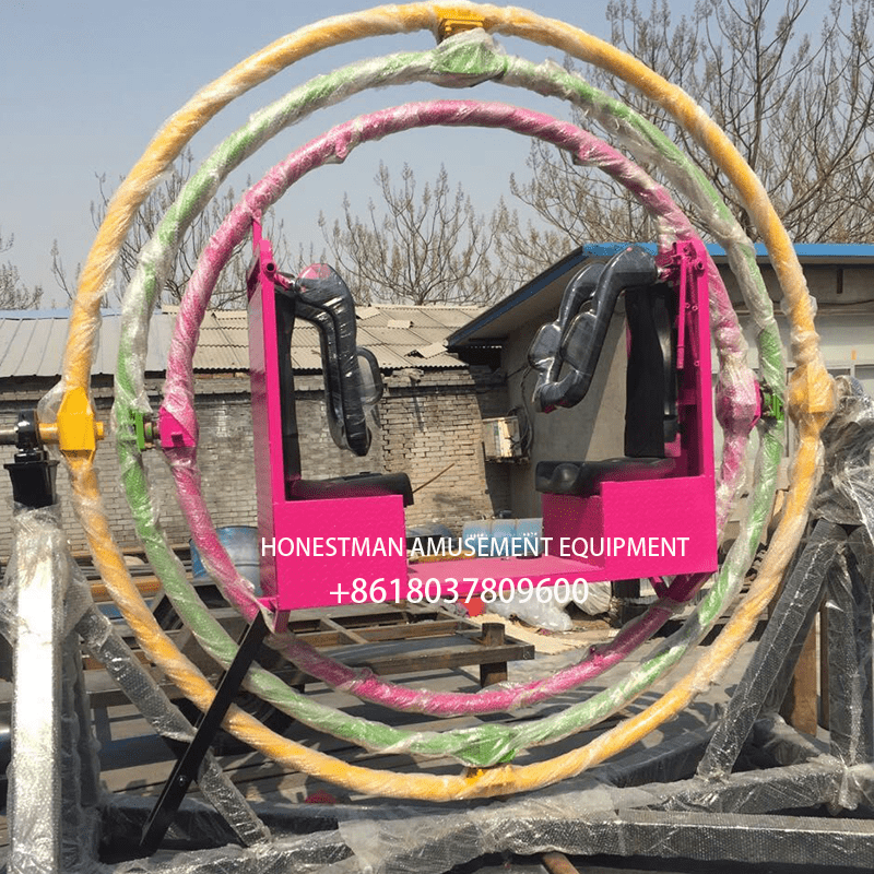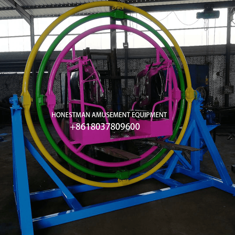 The 2-seater human gyroscope ride is comfortable to ride, safe and reliable.