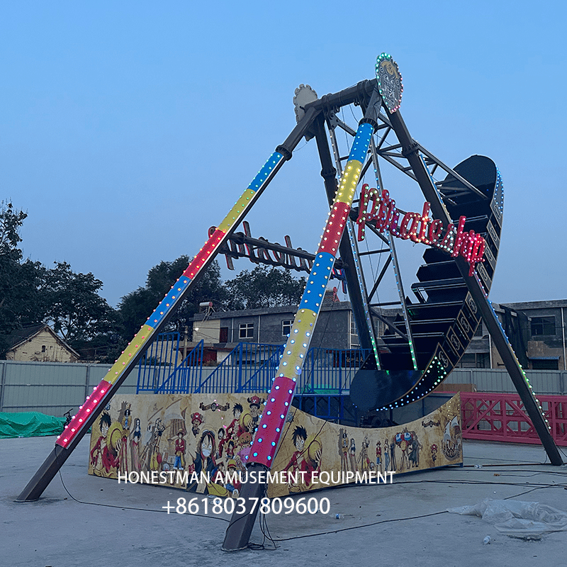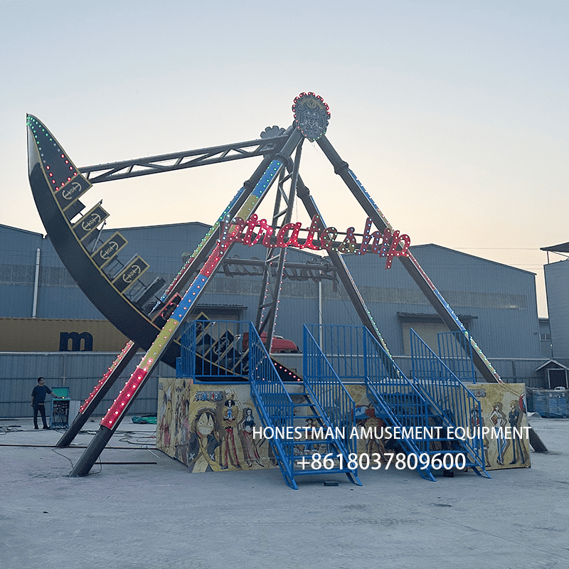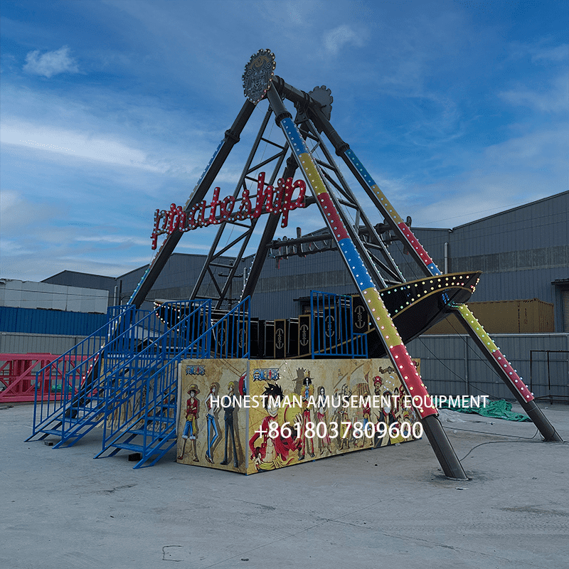 Because the Pirate Ship Amusement Ride’s high speed and force ensure guest safety, all positioning pins and connections must be inspected before each ride to ensure they are secure. The control system also plays a key role. Staff can use the control system to adjust the amplitude and speed of the Pirate Ship’s oscillations. For example, they can set appropriate oscillation parameters based on guest age and physical condition, ensuring both thrill and safety.