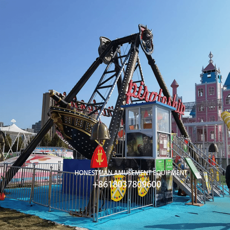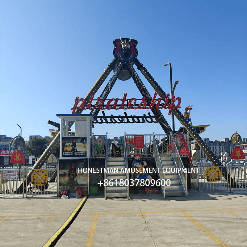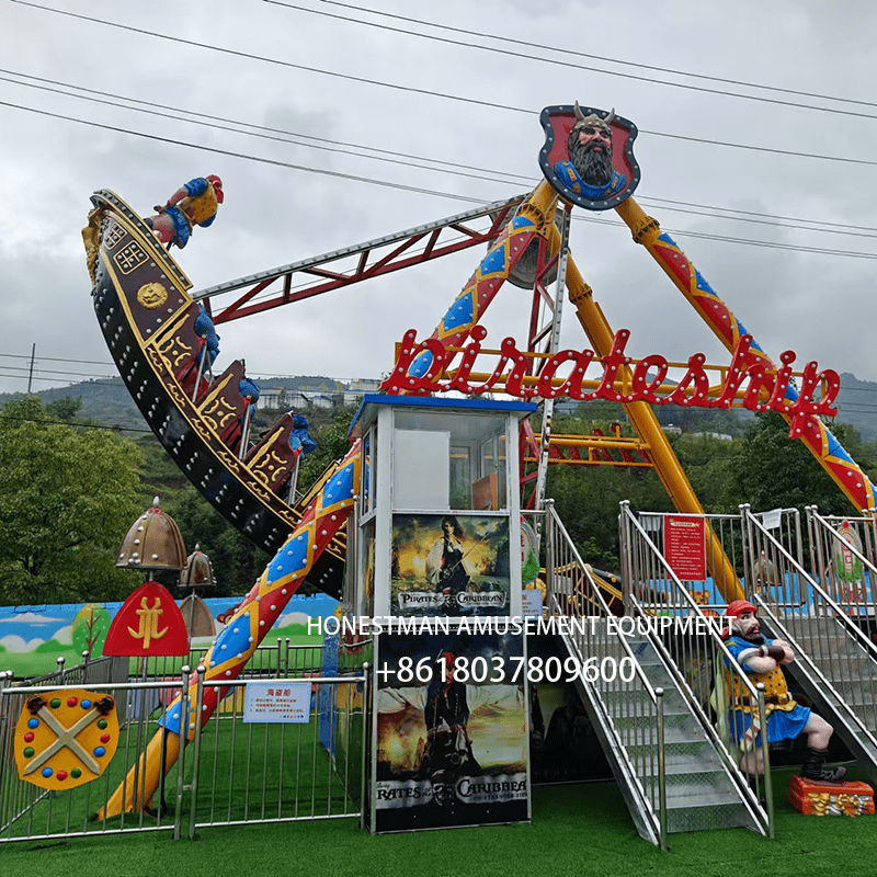 Thrilling Swings: One of the greatest attractions of a pirate ship ride is its intense swings. As the hull swings intensify, passengers feel as if they were on the surging waves, experiencing the heroism and courage of pirates in the face of a storm. This heart-pounding experience makes pirate ship rides one of the most popular thrill rides at amusement parks.