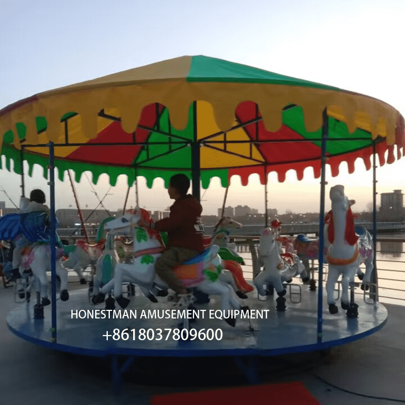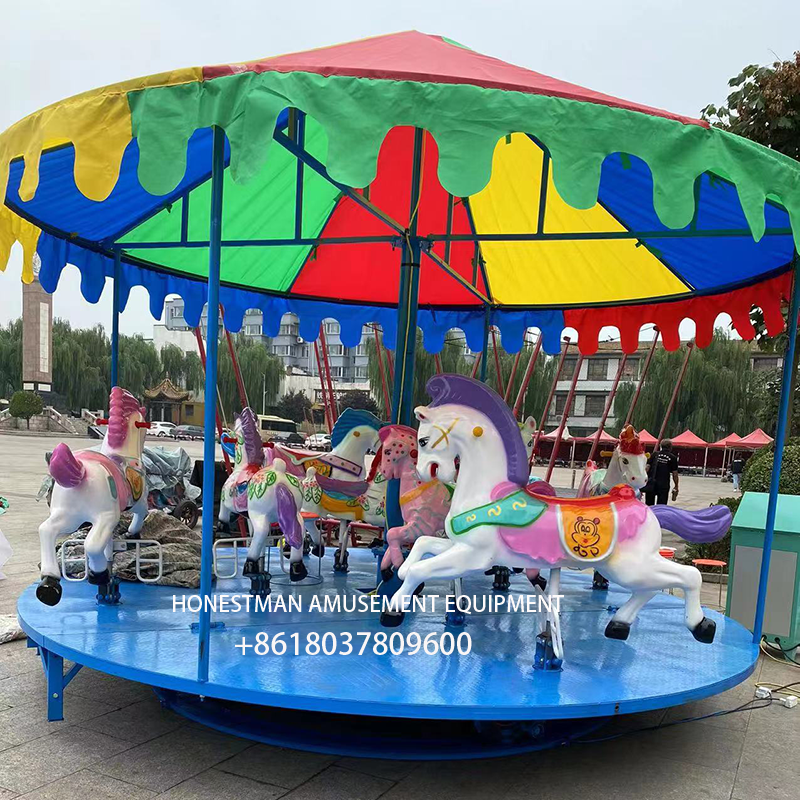 The Portable carousel is easy to carry and can be folded. It can be hung on a trailer and moved around. It is suitable for mobile playgrounds.