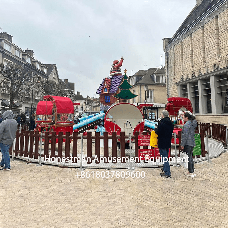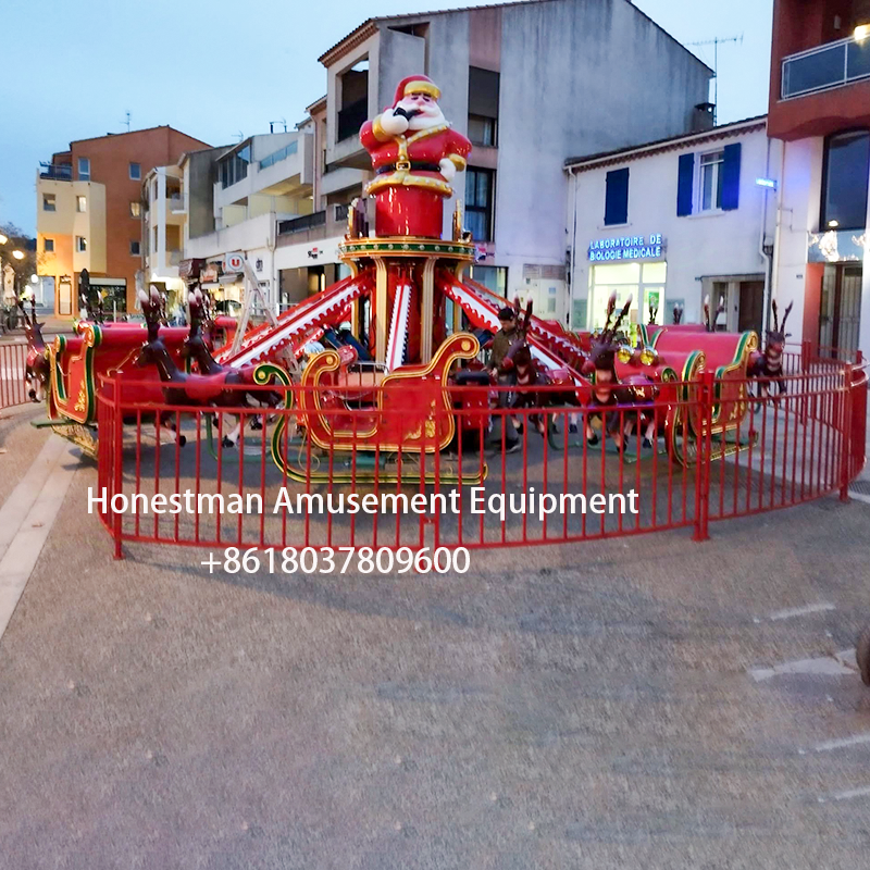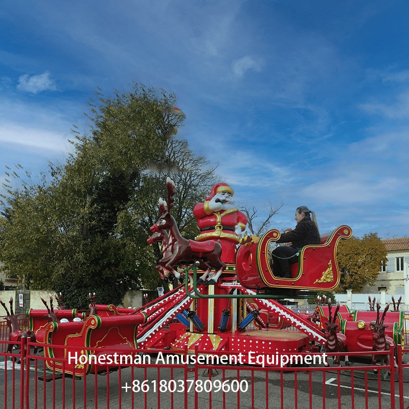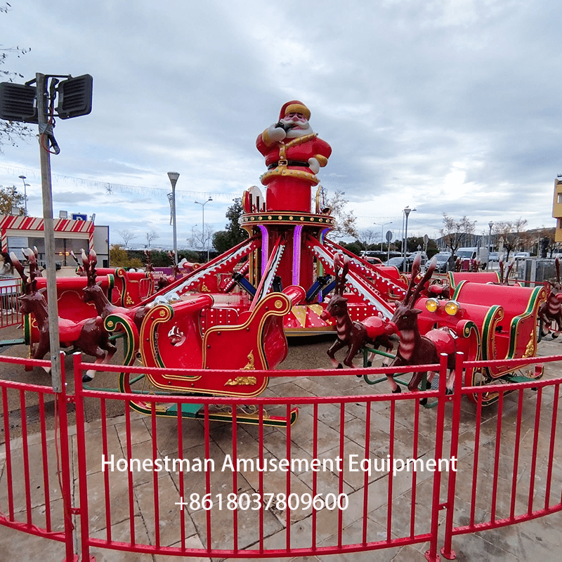 The self-controlled Christmas Rides plane is a very popular product in Europe. With a Christmas theme and red color scheme, it features Santa Claus, reindeer, and horse-drawn carriages, and can also be equipped with a spherical cabin. This aircraft can also be customized with a trailer upon request for easy movement.