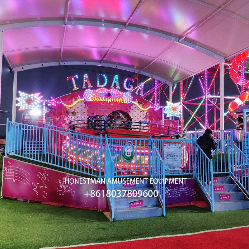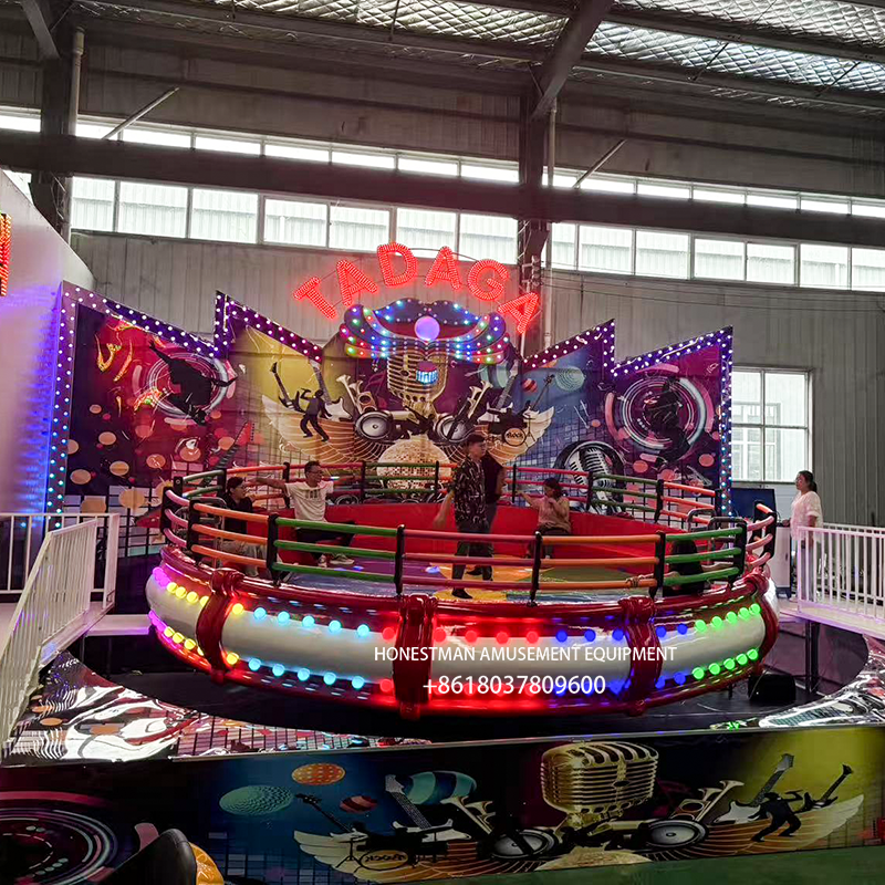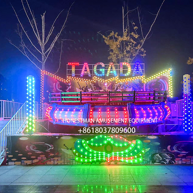 The TAGADA ride, also known as the Crazy Disco Turntable, Space Disco, or Music Turntable, is a popular amusement ride. Riders are transported to a sponge-covered disc where they undergo 360-degree spins, tumbles, and turns. To the rhythmic music, their bodies follow the disc’s motion. Under the strong centrifugal force, the ride spins and tumbles at high speed, creating a feeling of being transported into outer space. The ride’s sudden rises and falls, its undulations and rapids are endless, accompanied by powerful and thrilling music, creating a thrilling and exciting experience.